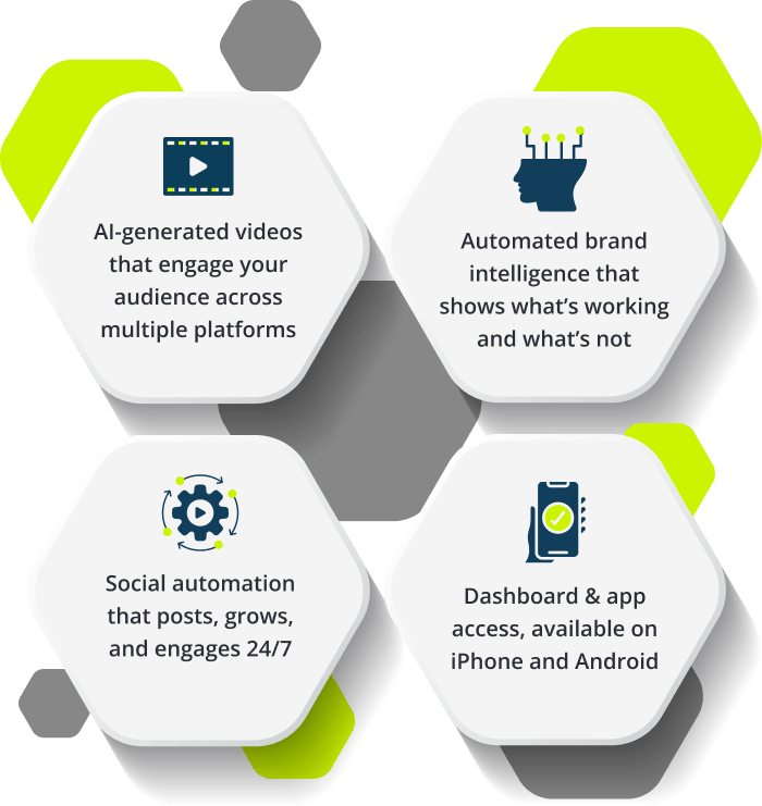 Our AI systems deploy intelligent video creation, data-driven insights, and automated social distribution to generate consistent engagement, reach, and momentum.